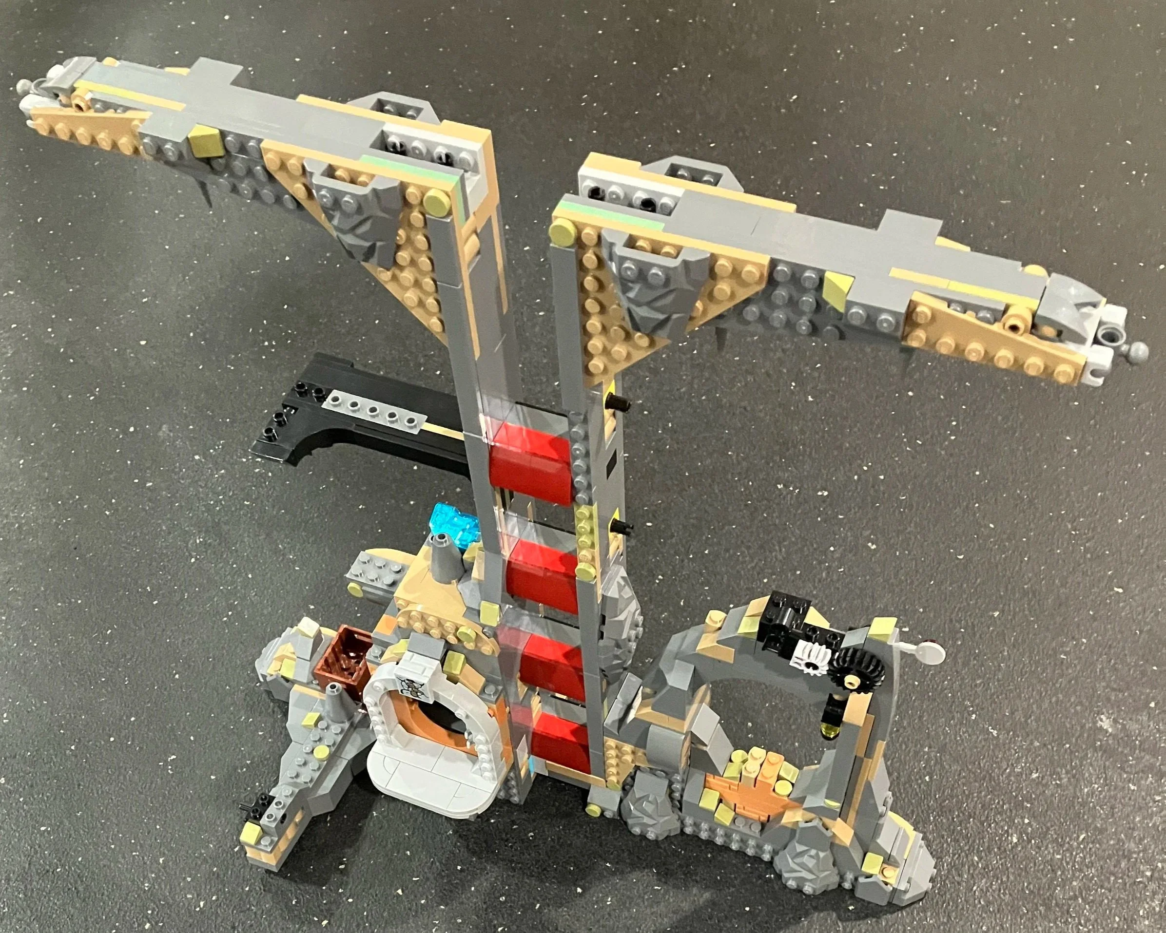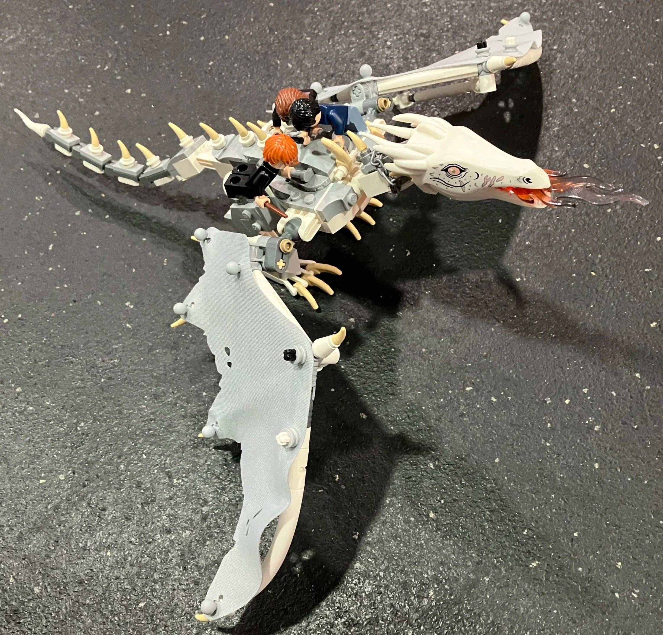 Bags 11 and 12 build the dragon that guards the vault. It is built to have some places where minifigures can hold on so you can recreate the escape from the vaults like the three characters did in the last movie.