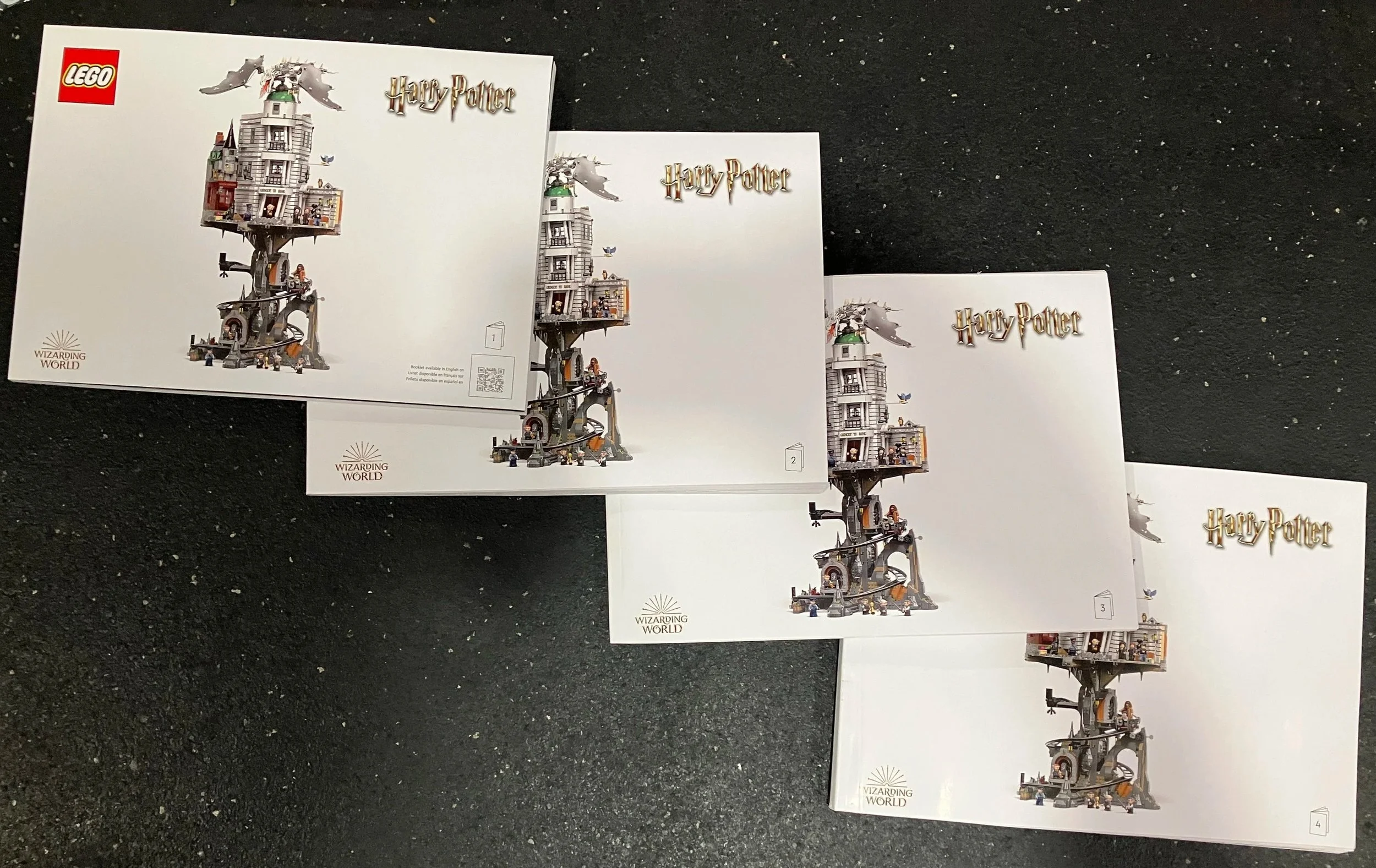 I’m embarrassed to say how long I’ve had this set waiting to build it. I finally got it together and now here’s the review. This is set #76417-1: Gringotts Wizarding Bank. It was released on 1 September 2023 and contains 4,803 pieces. It retails for $429.99 which works out to $0.09 per piece. This one connects with #75978-1: Diagon Alley which was released back in 2020 and is now retired. The difference is this set has the building and then the section underneath where the vaults are located.