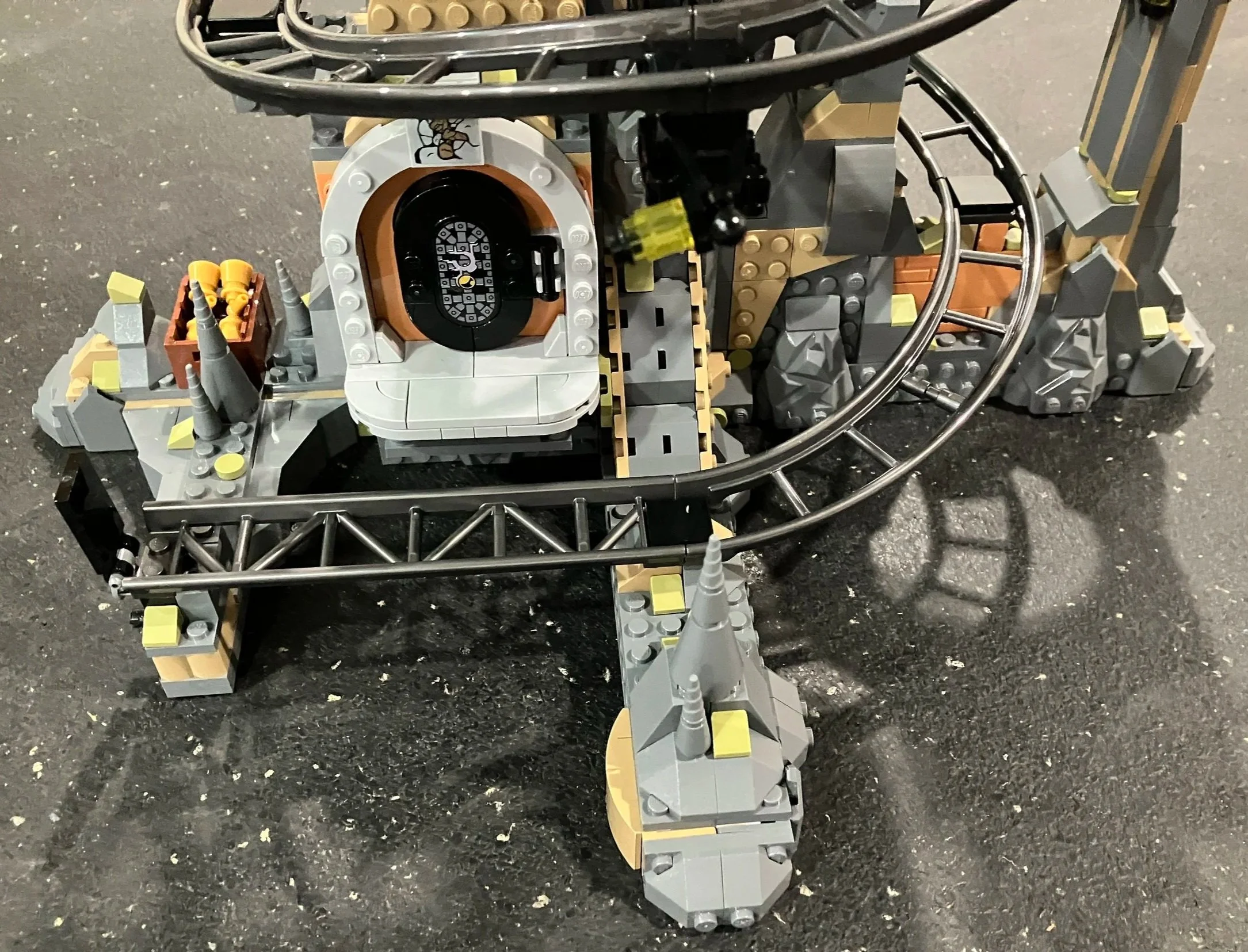 Bag 10 wraps up the vault area with doors on the vaults and some additional details like the bell device to scare the dragon. This section is more of a play feature, but isn’t as great as a display piece due to size and that it doesn’t look like the movie. The good part is that it can be easily separated if you just want to display or connect it to Diagon Alley.
