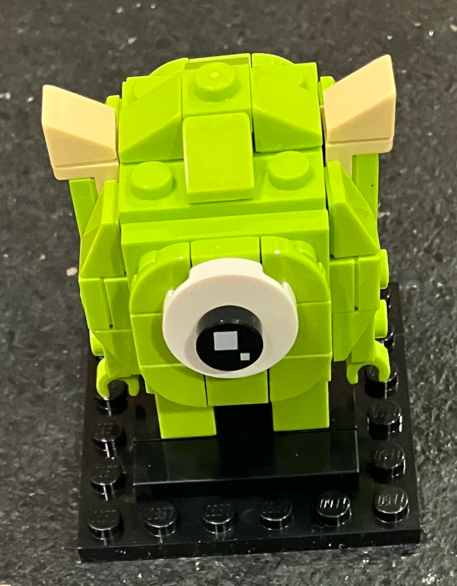 Bag three builds Mike. I realize it’s a Brickheadz character, but I feel like he doesn’t have the roundness that you’d expect like the movie character. The top of his head especially with the use of cheese slopes and quarter round tiles doesn’t quite capture it. I do like the eye how they have the larger round white and then the standard Brickheadz eye tile on top of it.
